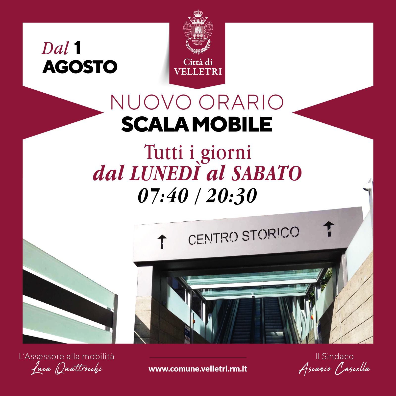 Dal 1 Agosto il servizio della scala mobile sarà a disposizione dei cittadini dal lunedì al sabato dalle ore 7:40 alle ore 20:30