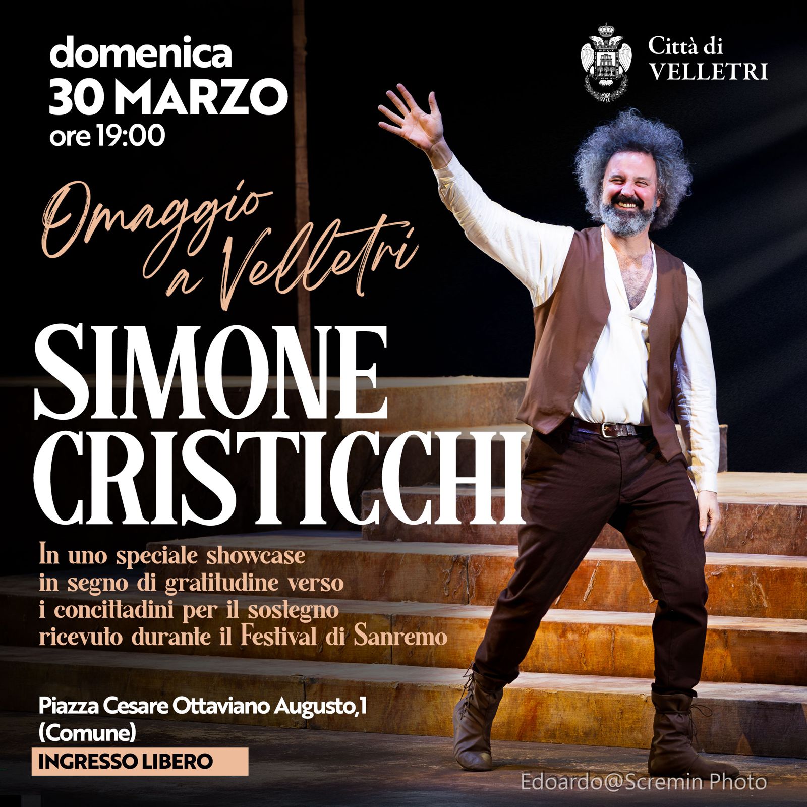 Domenica 30 marzo alle ore 19:00 il maestro Simone Cristicchi omaggia la città in uno speciale showcase in segno di gratitudine verso i concittadini per il sostegno ricevuto durante il Festival di Sanremo. L'evento si terrà in Piazza Cesare Ottaviano Augusto, 1. Ingresso libero.